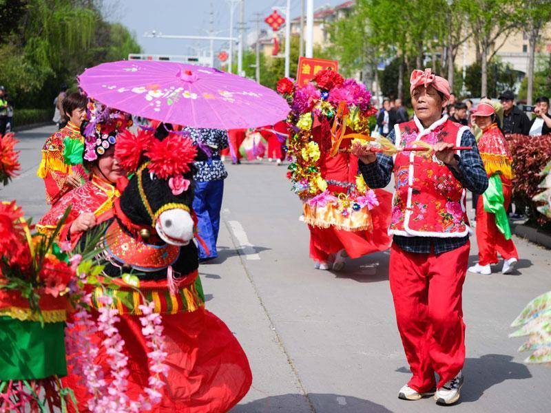 特色展演环节,各乡镇非遗代表性传承人、民间艺人组成民俗方阵,现场展示五河民歌、地方戏曲等特色文艺,尽显地方文化魅力。清晨伊始,众多民间艺人齐聚青年圩广场,随后沿县城主要街道踩街巡游,精湛表演引得市民与周边游客一路驻足观看、喝彩不断,县城处处洋溢着热闹喜庆的氛围。