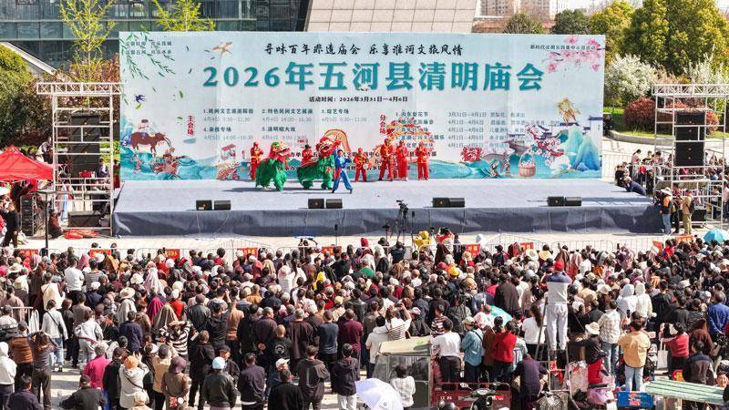 2026年4月4日,有着百年历史的安徽省非物质文化遗产代表性项目——五河清明庙会正式开幕。舞龙、舞狮、旱船等非遗民俗展演走上街头,为市民献上一场浓郁的传统文化盛宴。